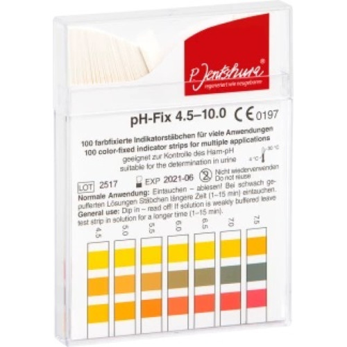 Mit den pH-Streifen kann einfach und schnell der pH-Wert von Urin, Getränken oder anderen Flüssigkeiten gemessen werden. Inklusive Urinmessprotokoll.